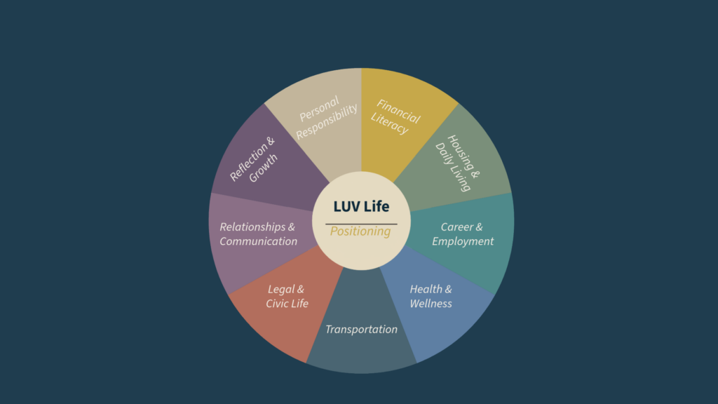 The Adulting guide introduces the LUV Life Positioning Framework — a practical model that helps you evaluate the key areas of life that support independence, stability, and forward momentum.
